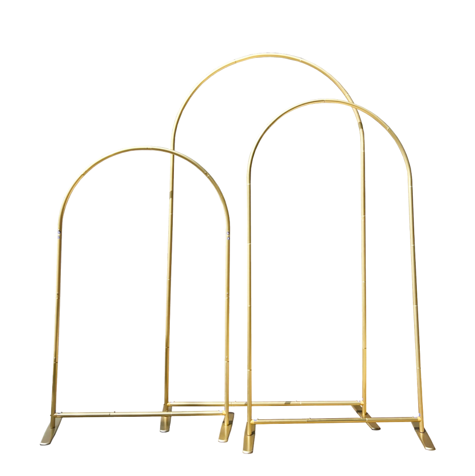 This gold arch stand is made of aluminum alloy, a perfect manufacturing process, which makes the frame very luxurious, but also very strong. Stand can be assembled and disassembled quickly and can be reused. We use 25mm diameter aluminum alloy tubes( the material is not metal).