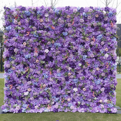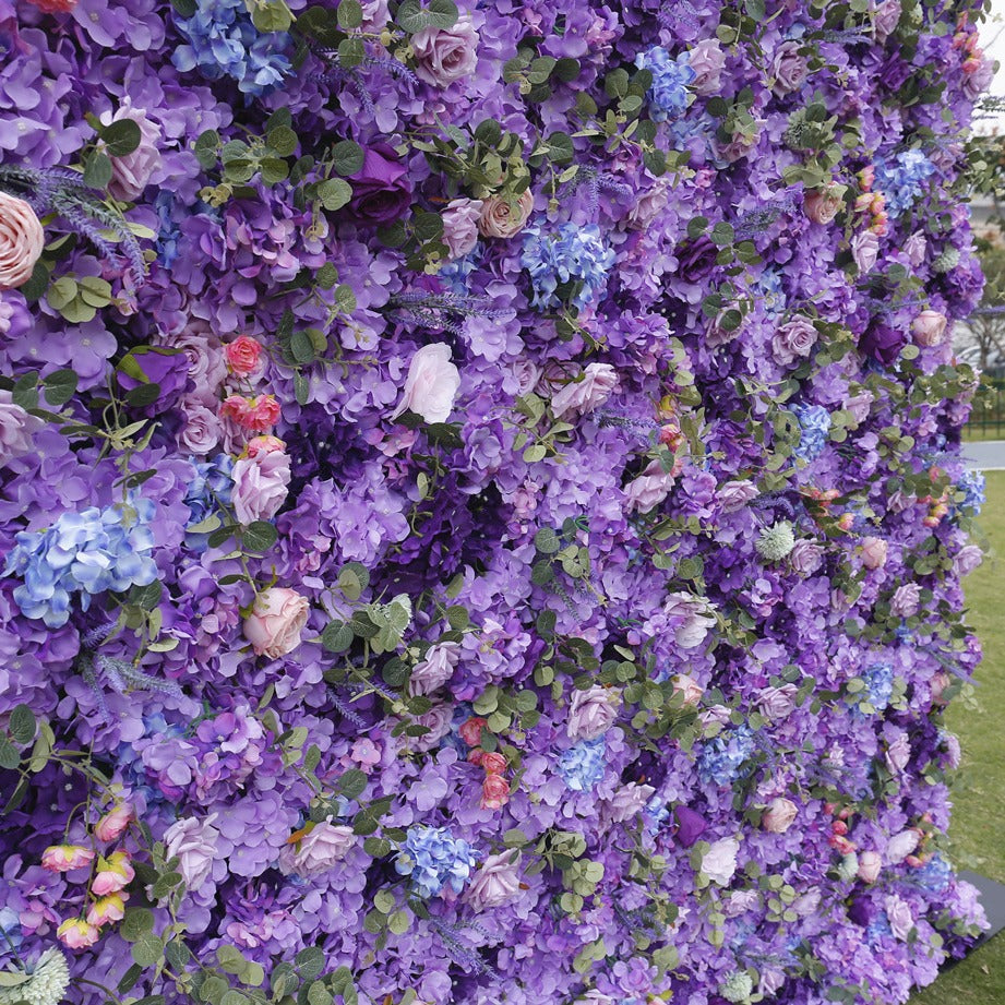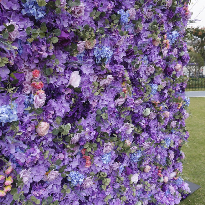 Handmade Artificial Cloth Curtain Purple Silk Flower Wall Wedding Backdrop Decoration Outdoor Event Party Decor Props