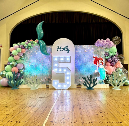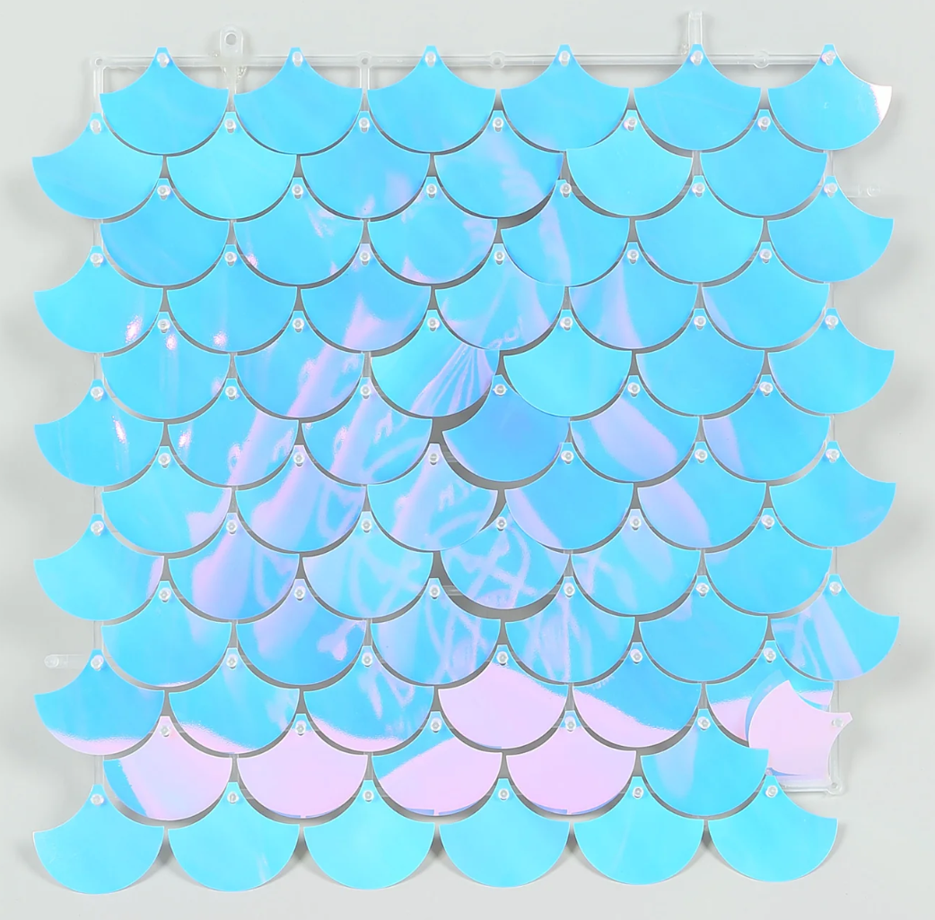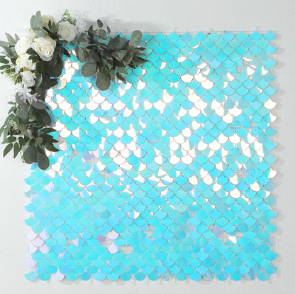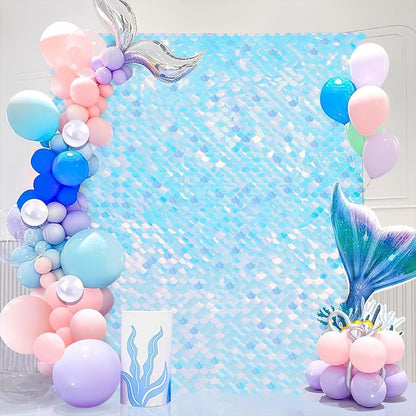 8ft by 8ft Rainbow Blue Mermaid Scale Sequin Shimmer Backdrop Wall Panels For Birthday Baby Shower Party Decoration