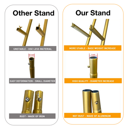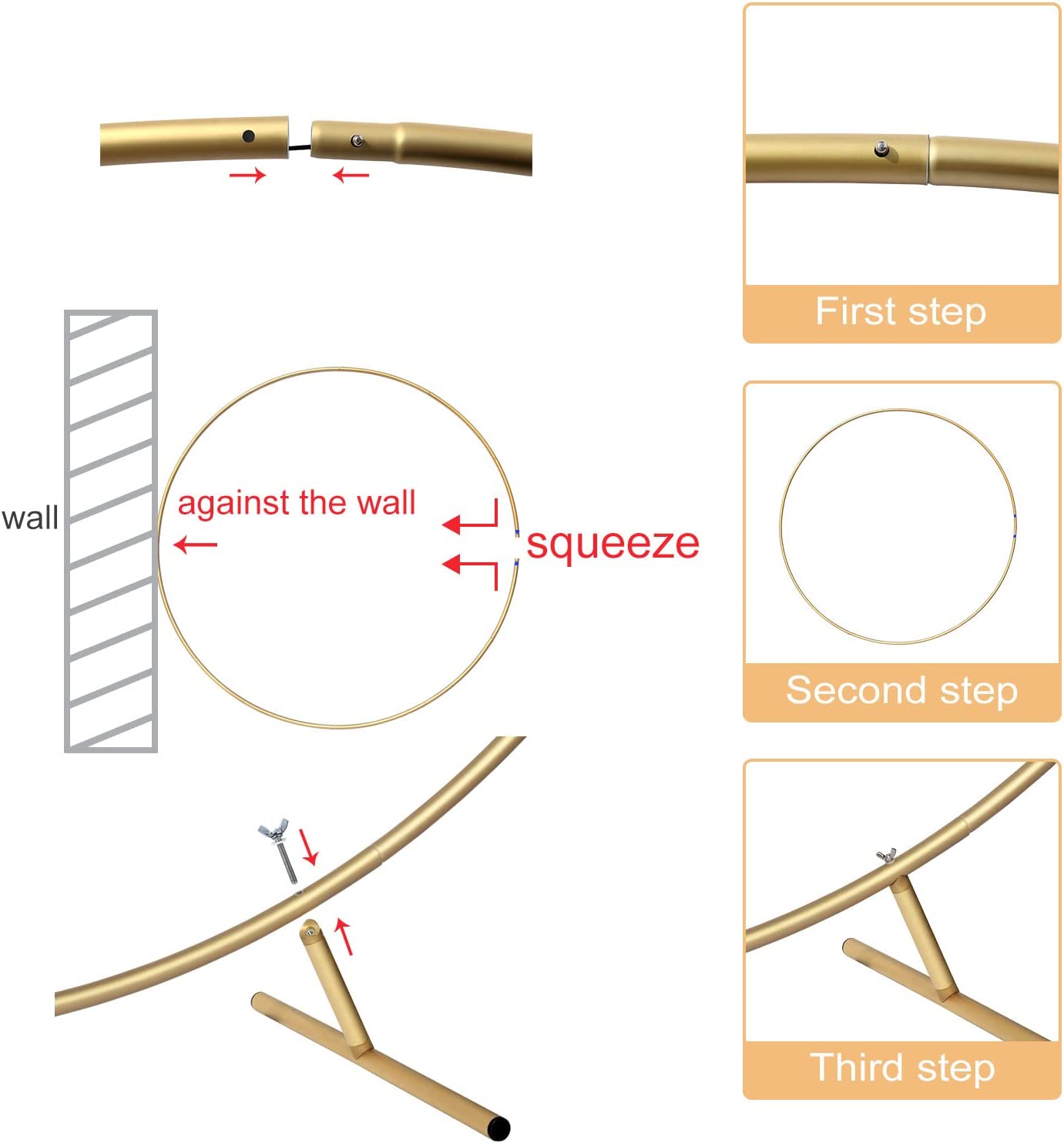 The round circle arch stand is made of aluminum alloy, a perfect manufacturing process, which makes the round arch stand very luxurious, but also very strong. There are supporting iron parts at the bottom, which can support the round frame very well.