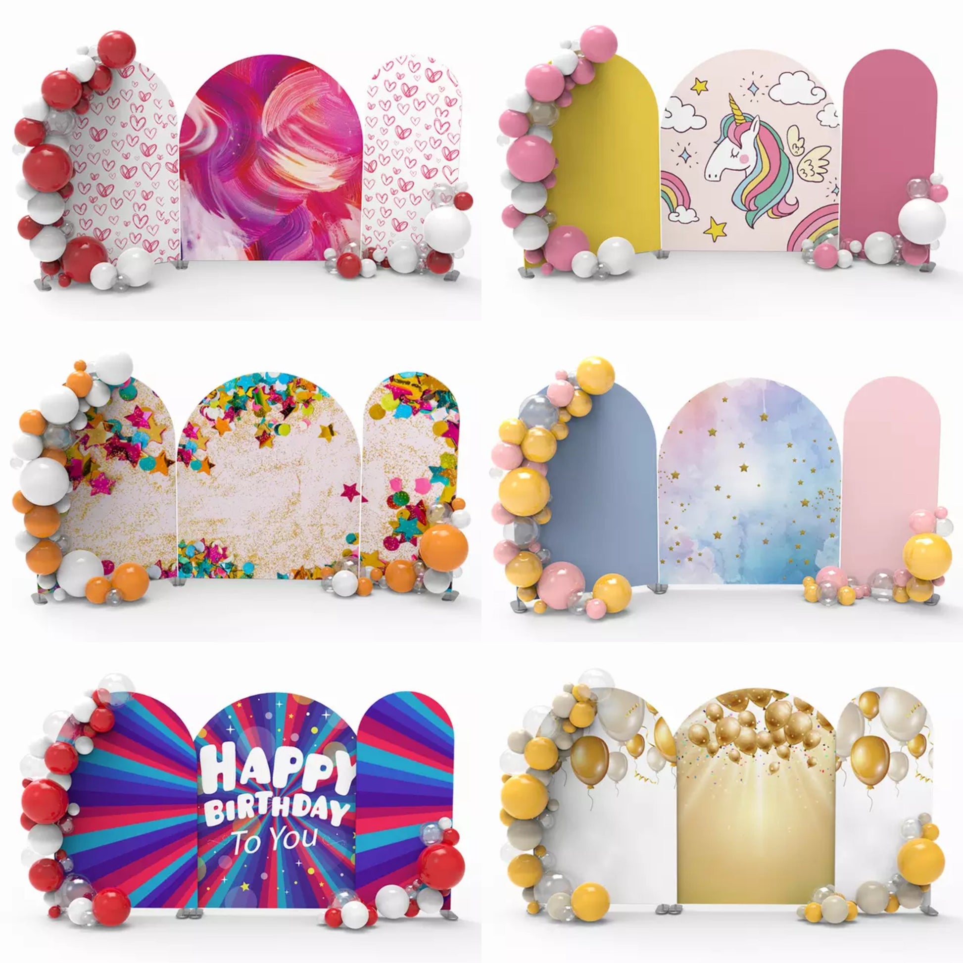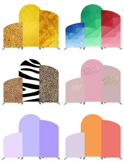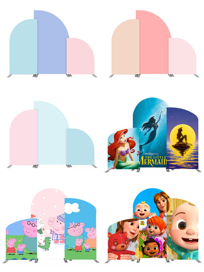 The Wedding Birthday Arch Backdrop included 3PCS aluminum alloy pipe stands and 3PCS tension fabric covers; Just change the design of the fabric cover to make your party stand out. It's suitable all events .