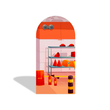Fireman Firefighter Fire Truck Theme Arch Backdrop Wall Cloth Cover For Birthday Baby Shower Party