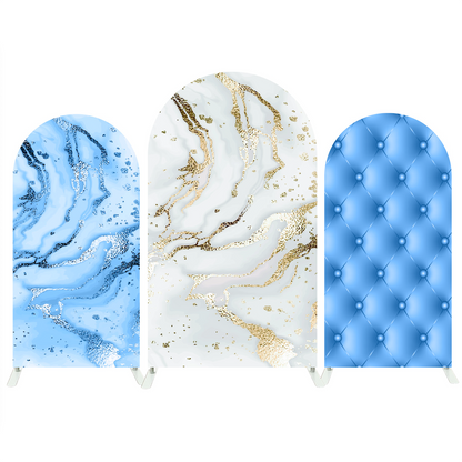 Blue Marble Upholstery Quilted Happy Birthday Party Arch Backdrop Wall Cloth Cover