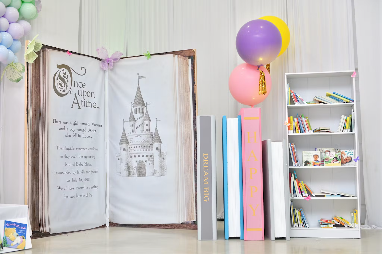 Once Upon a Time Story Book Fabric Backdrop For Birthday Wedding