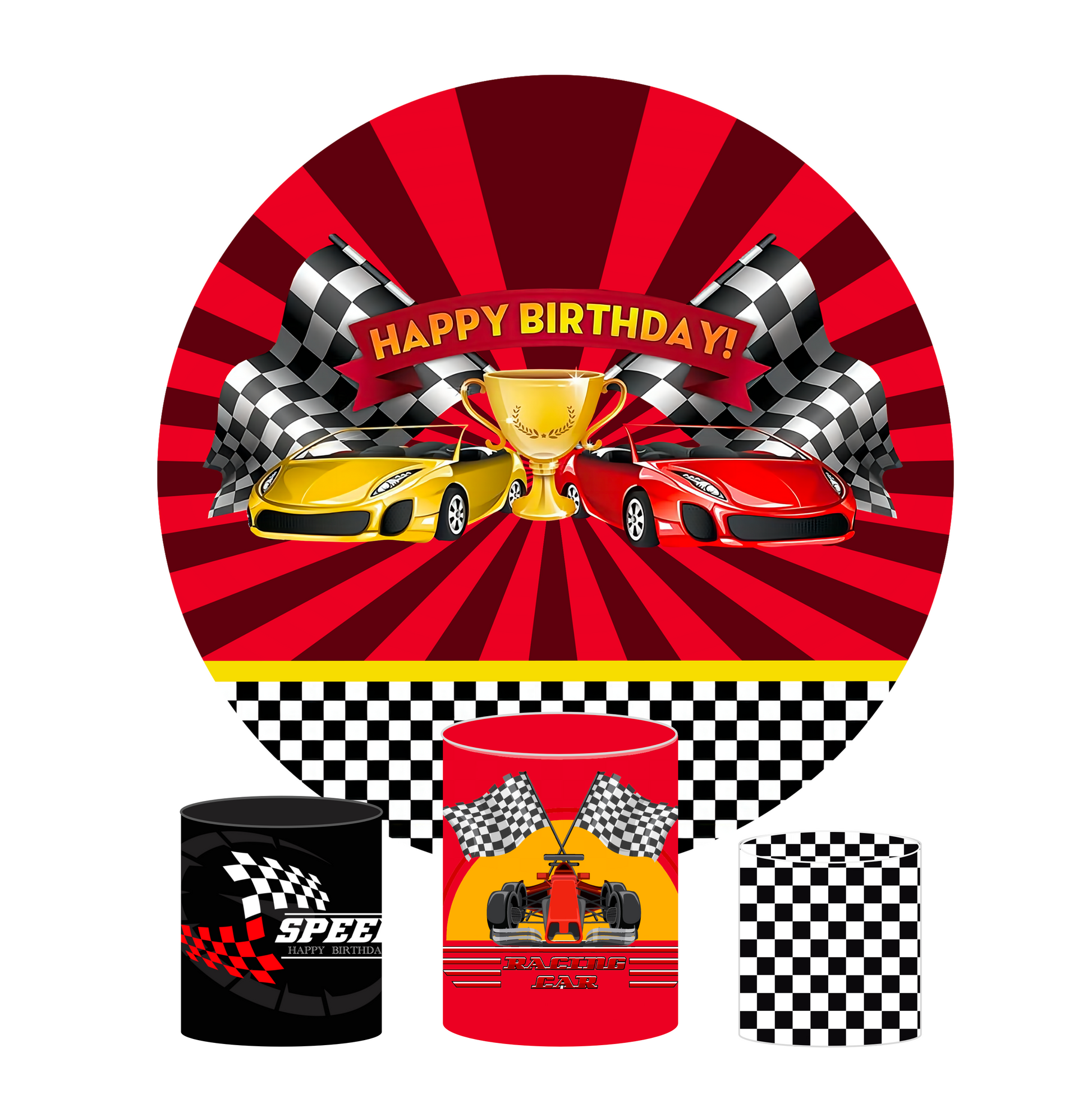 Racing car birthday party decoration round circle backdrop cover plinth cylinder pedestal cloth cover