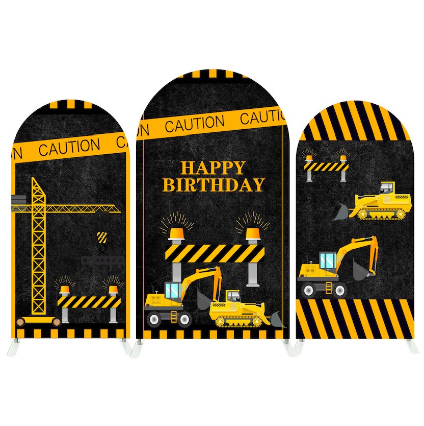 Under Construction Equipment Vehicles Truck Arch Backdrop Wall Cloth Cover For Birthday Baby Shower Party