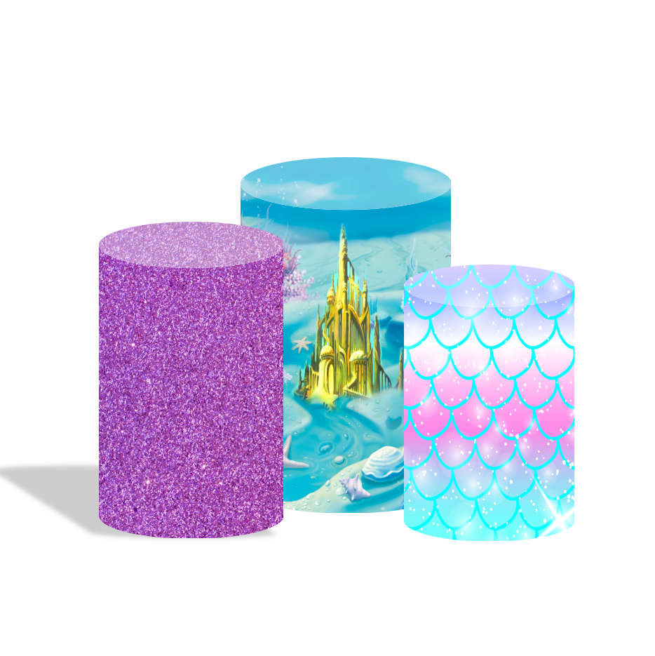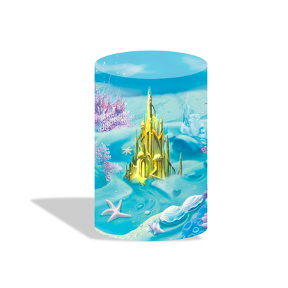 Under the sea mermaid birthday party decoration round circle backdrop cover plinth cylinder pedestal cover