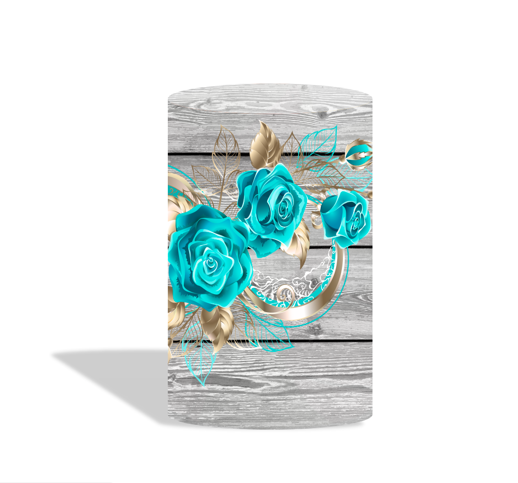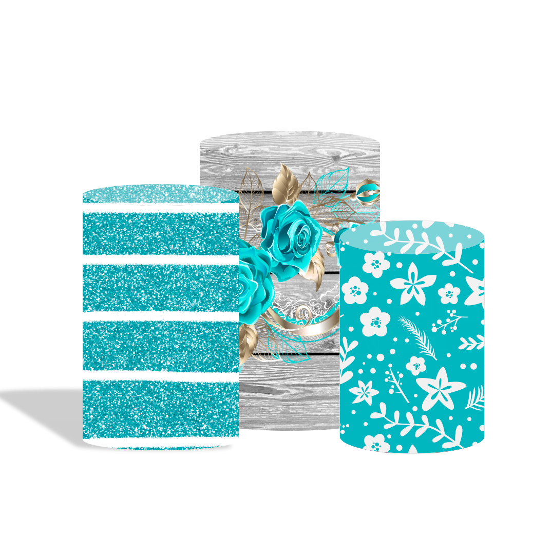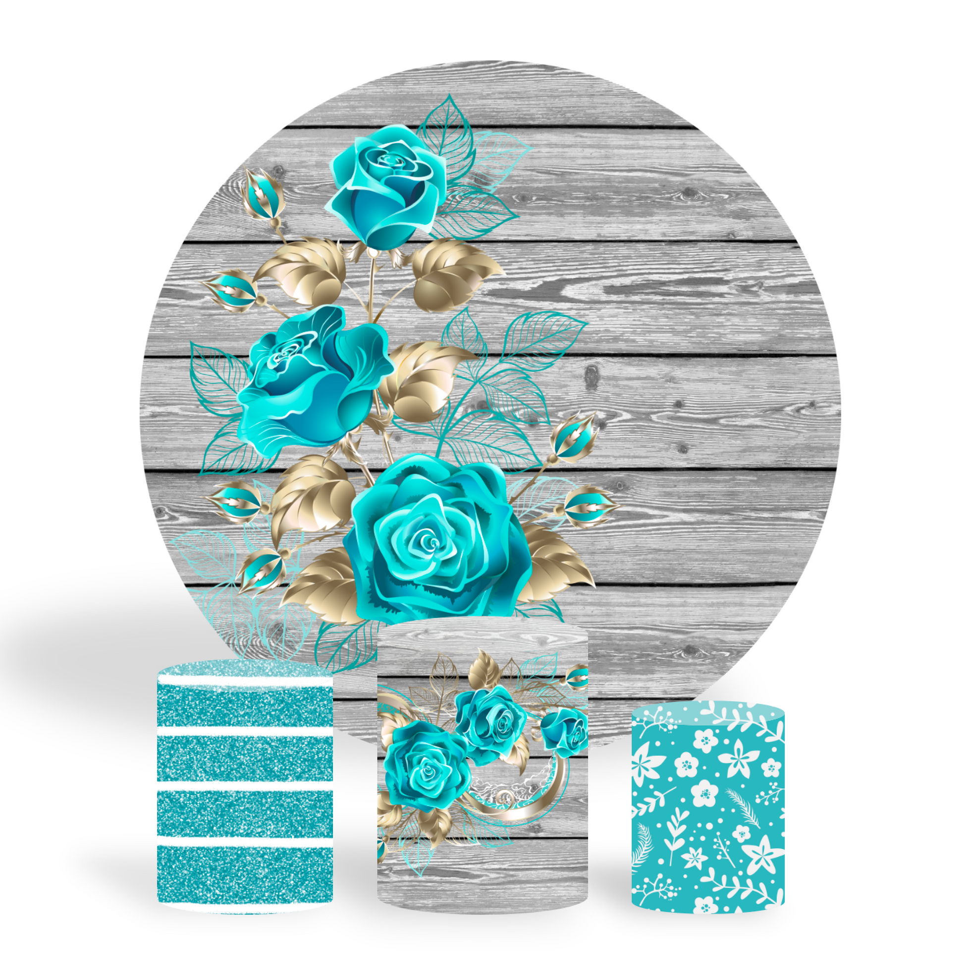 Wood blue rose birthday party decoration round circle backdrop cover plinth cylinder pedestal cloth cove